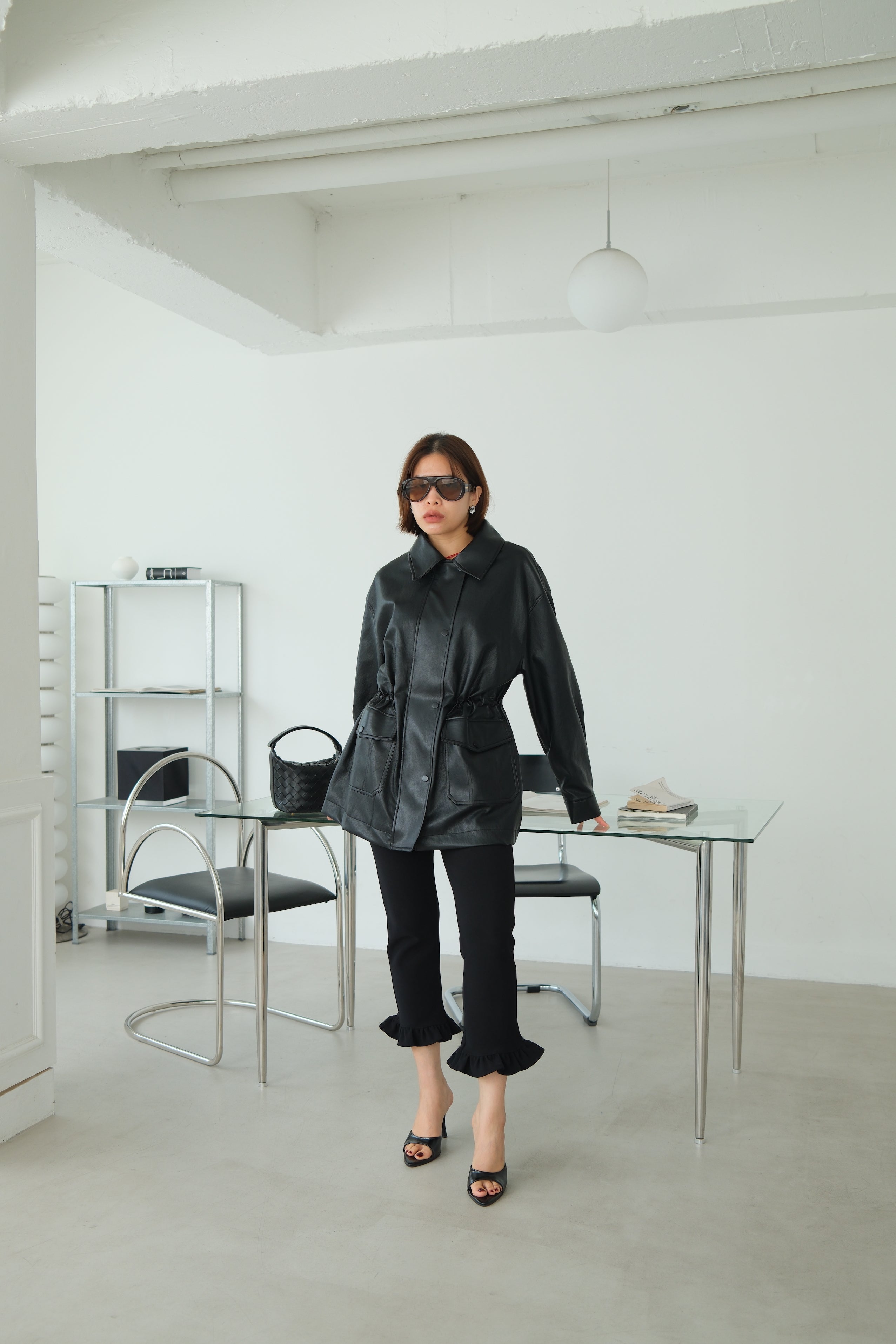 Kate Leather collar Sculpt Belted Long Coat